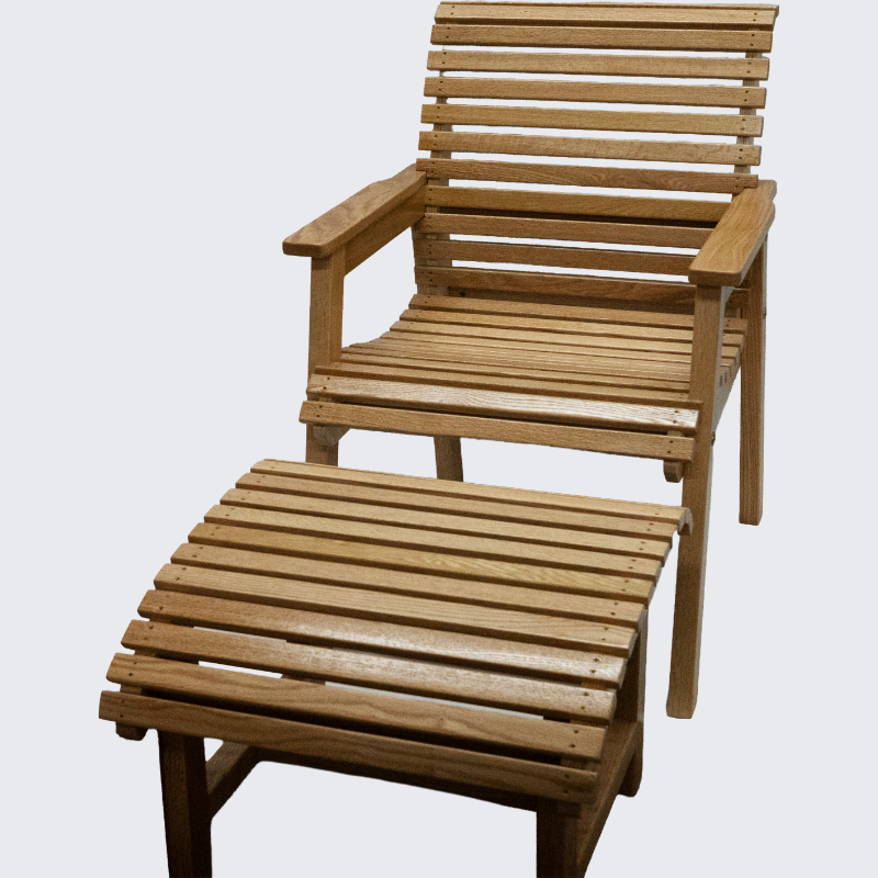 Our Comfort chair features smooth side handles for easy movement and a timeless design perfect for relaxing indoors or out. Crafted for comfort and style, it pairs beautifully with an optional matching footstool to elevate your lounging experience. Whether you're unwinding after a long day or enjoying a quiet moment, this chair offers both function and elegance. Available in a variety of woods, pricing list is with white oak and painted or vanished. Additional options available at customized pricing.